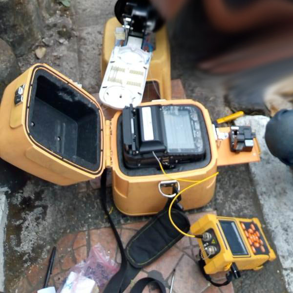 Instalasi fiber Optik, OTB dan penyambungan fiber optik untuk Parking Ticketing Data, Festival Citylink Bandung, Mei 2019