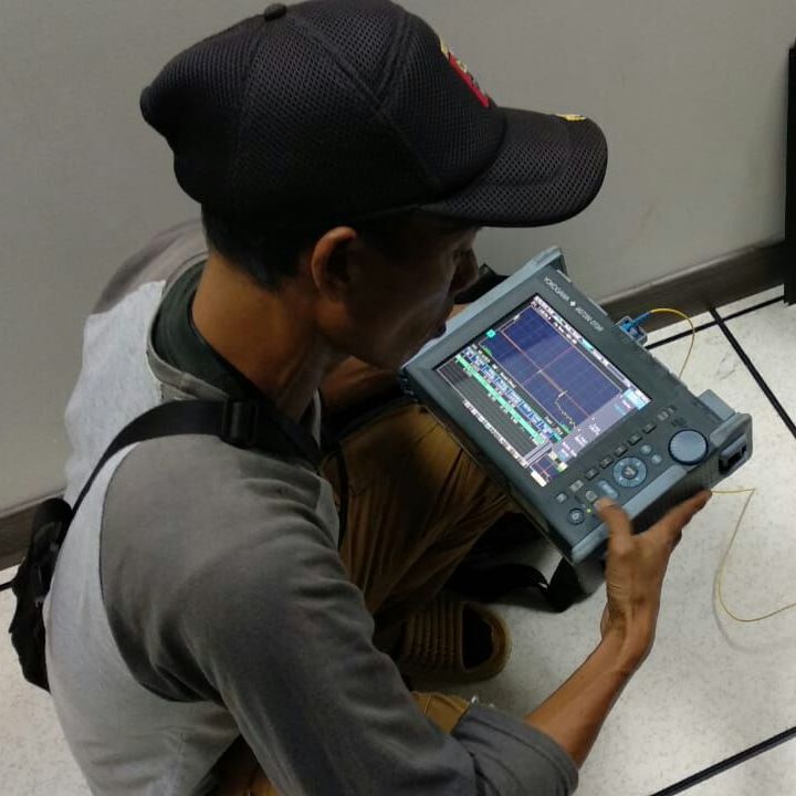 Perbaikan jaringan serat optik untuk CCTV, Subang, Jawa Barat, Juli 2018