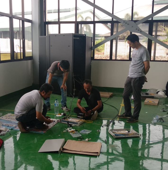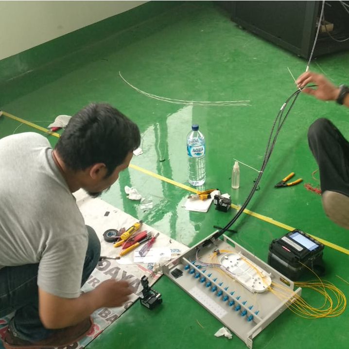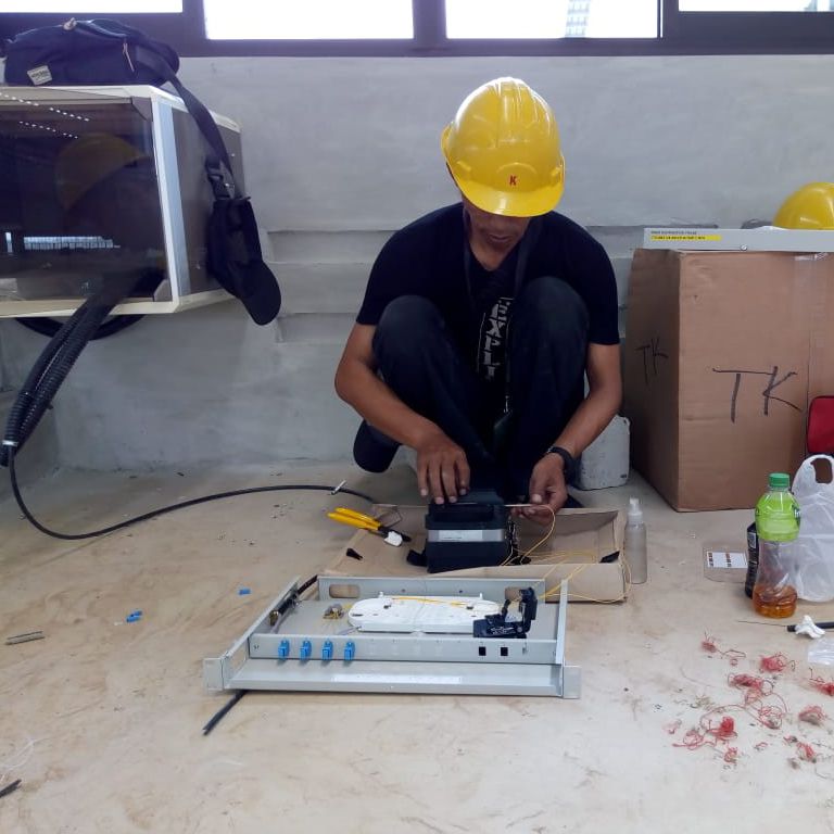 Instalasi kabel, OTB dan penyambungan serat optik, Subang, Jawa Barat, October 2018